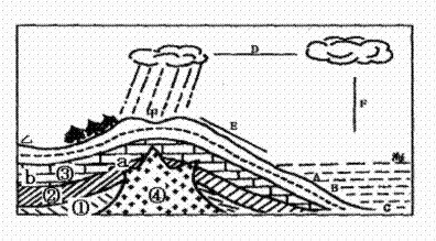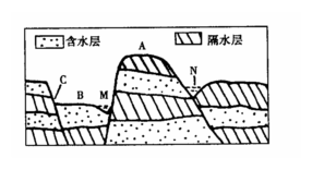 (2)从地质构造上,C是 ,地下水出露于地表,在这里形成