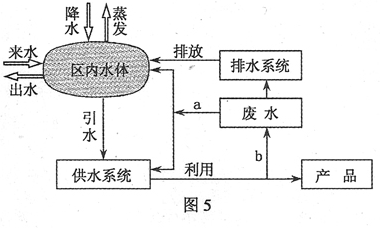 图5是某区域水资源循环利用模式示意图。读图回答9-11题。