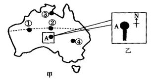 27、当图甲中A旗杆正午的影子如图乙所示时,且影子处于一年中最短,图甲中①②③④地的旗杆无影子的是: