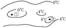 D.①处在0 ℃以上,②处在4 ℃以下![]()