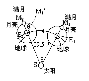 因为月球总是一面向地球,故T恰好等于月球自转周期,月球转过(2π+θ)用了29.5天,故共转过2π只用