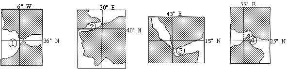 下图是一组世界区域地图,根据所学知识回答21-22题。
