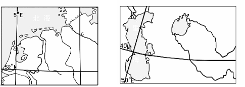 (4) 比较甲半岛西海岸与同纬度北美西海岸气候分布的差异和形成原因。(2分)