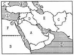 (3) 图中所示地区一直是世界关注的热点、焦点地区,请你从地理位置、资源、宗教等方面给予解释说明。(3分)