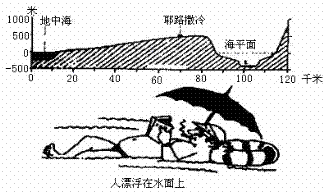 (4) 简要叙述下面两图表示的西亚某湖在理化特征方面的显著特点:(2分)