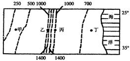 读“某地年等降雨量(单位:毫米)线图”,回答28-30题。