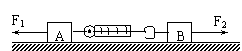 11、物块A、B放在光滑水平面上并用轻质弹簧相连,如图所示,今对物块A、B分别施以方向相反的水平力F1、F2,且F1大于F2.,则弹簧的示数( )
