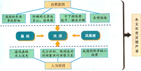 (1)旱灾和涝灾在时间上交替:我国主要旱涝交替区有黄河流域、海河流域、长江中下游及珠江流域等地区
