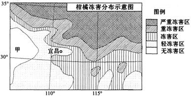 (1)指出图示区域柑橘冻害分布特点,分析甲地无冻害的原因。