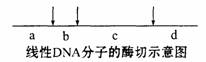已知某种限制性核酸内切酶在一线性DNA分子上有3个酶切位点,如图中箭头所指。如果该线性DNA分子在3个酶切位点上都被该酶切断,则会产生a、b、c、d四种不同长度的DNA片段。现有多个上述线性DNA分子,若在每个DNA分子上至少有1个酶切位点被该酶切断,则从理论上讲,经该酶切割后,这些线性DNA分子最多能产生长度不同的DNA片段种类数是( )