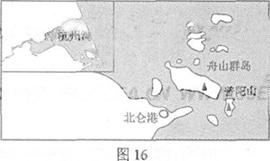 30.(2009江苏卷)A.[海洋地理]图16是杭州湾、舟山群岛示意图。读图回答下列问题。(10分)