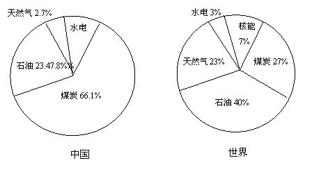 (1)我国能源结构的主要特点是能源消费以 为主;世界能源结构的主要特点是能源消费以 为主。(2分)