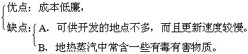 (1)概况:地热能是地球内部蕴藏的巨大热量,包括地下热岩和热液中所储存的能量。现在被开发利用的多为后者。