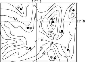 1.如果在图中AB处修建水坝,形成的水库最大蓄水水位海拔为100米,那么图中要搬迁的村庄是