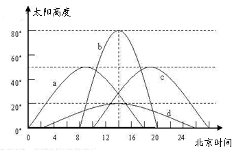 读a、b、c、d四地太阳高度变化图(图4),完成8-9题。