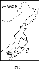30.(8分)图9是我国影响严重的台风次数统计图,读图回答: