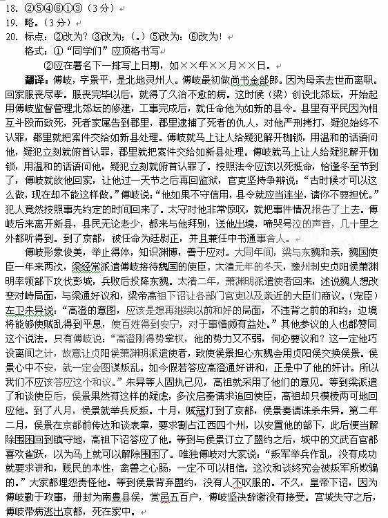 20.下面是高三(23)班写给全校同学的倡议书。其中格式有两处不当,画线部分的标点有四处不当,请一一订正。(4分)