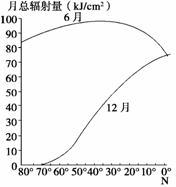 24.(12分)右图是“北半球海平面6月和12月太阳月总辐射量随纬度变化示意 图”。读图回答下列问题。