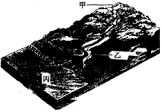 15.从甲一乙一丙处,河流堆积物特点是( )