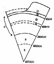 (2)图中数码和字母代表的圈层名称是:① ,② ,①+② ,①+②+③ ,④ ,C ,D ,E 。