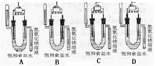 4.下图中(其中粗电极为铁钉,细电极为碳棒)能验证氯化钠溶液(含酚酞)电解产物的