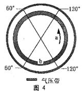 (2007江苏高考)图4为"以极点为中心的半球示意图",图中箭头表示地球自转方向。读图回答7-9题。