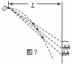 22.(6分)某同学设计一个测定平抛运动初速度的实验装置,设计示意图如图7所示,O点是小球抛出点,在O点有一个频闪的点光源,闪光频率为30Hz,在抛出点的正前方,竖直放置一块毛玻璃,在小球抛出后,当光源闪光时,在毛玻璃上有一个小球的投影点,在毛玻璃右边用照相机多次曝光的方法,拍摄小球在毛玻璃上的投影照片.已知图中O点与毛玻璃水平距离L=1.2m,两个相邻小球投影点的实际距离Δh=5cm,则小球在毛玻璃上投影像点做 运动,小球平抛运动的初速度是 m/s.