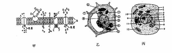 31.Ⅰ(14分)下图表示细胞和生物膜结构模式图,甲图中A、B、C、D、E、F表示某些物质a、b、c、d表示物质进出膜的运输方式,乙、丙图中序号表示细胞的某些结构。请据图回答:([ ]内填字母或序号,横线上填文字)