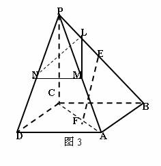 ,M、N分别为棱PA 、PD的中点,问在底面正方形的对角线AC上是否存在一点F,使EF//平面LMN. 若存在,请具体求出CF的长度;若不存在,请说明理由.