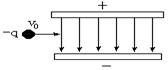 7.如图所示,两平行金属板间有匀强电场,场强方向指向下板,一带电量为-q的粒子,不计重
