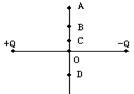 如图所示,在等量异种电荷连线的中垂线上取A、B、C、D四点,B、D两点关于O点对称,则关于各点电场强度及电势的关系,下列说法中正确的是:( )