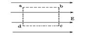 如图所示,匀强电场E=103N/C,矩形abcd的ab边与电场线平行,且ab=3cm,bc=2cm,将点电荷q=5×10-8C沿矩形abcd移动一周,电场力做功_______,ab两点的电势差为_______ V,bc两点的电势差为______.