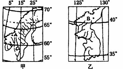 (2)甲半岛A地位于乙半岛B地的 方向。
