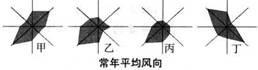 2.上图中数码所示地与下列“常年平均风向”、“工业分布”示意图连线正确的是: