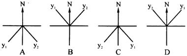 10.下图中符合该日北京日出物体日影(y1)与日落物体日影(y2)的是( )