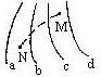 如图a、b、c、d为某电场中的等势面,一带正电粒子飞入电场后只在电场力作用下沿M点到N点的虚线运动.由图可知,四个等势面电势Ua、Ub、Uc、Ud由高到低的排列顺序是_______,带电粒子在M、N两点中,电势能较大的是_________点.![]()