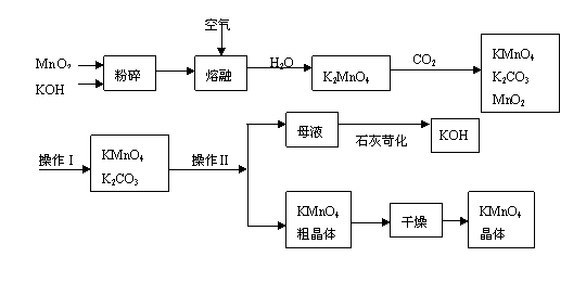 (5)操作Ⅰ的名称是_____________;操作Ⅱ是根据KMnO4和K2CO3两物质在__________(填性质)上的差异,采用____________(填操作步骤)、趁热过滤得到KMnO4粗晶体的。
