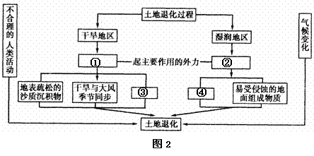 读土地退化过程示意图(图2),各选项与图中空白连线正确的是
