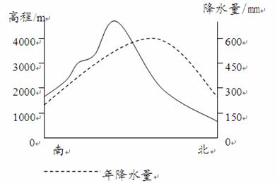 3.读“天山中部降水量随高度的变化图”,回答问题。(每空2分,共10分)