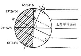 若黄赤交角为30°,则B点的昼长为 小时。