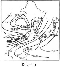 34.图7-10是春末夏初我国部分地区气压分布图,