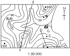 (4)在方框中,画出EF剖面线的地形剖面图(垂直比例尺是1:5 000)。