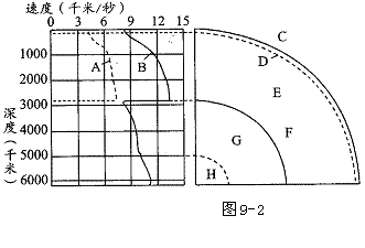 (3)图中F处,地震波A完全 ,地震波B速度 并继续往深处传播。这说明F面以上的E物质状态为 态,以下的G物质状态为 态,F面是 面。