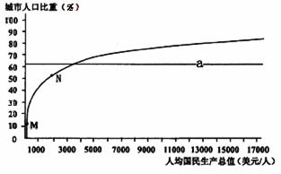 下图是世界各国城市人口比重与人均国民生产总值关系图。回答3-4题。