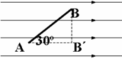 22、如图所示,在场强为E=4.0×103N/C,的匀强磁场中有相距为5.0㎝的A、B两点,两点的连线与场强方向成30º角,求:A、B两点间的电势差。将电量为4×10-6C的点电荷从A点移到Bˊ点,电场力做多少功?![]()