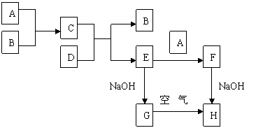 24(A).(10分)A-H所代表的各物质是中学化学里常见的物质。A为黄绿色气体,B为常见的气体,D为常见金属单质,G为白色沉淀,H为红褐色沉淀。A,H各物质之间相互反应转化的关系如下图所示(未注明必要的反应条件):