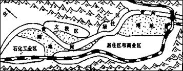 读“黄河沿岸某城市示意图”,回答17-20题。