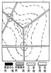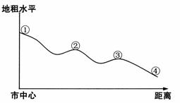右图为某城市地租水平与空间变化关系图,据图判断25题: