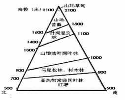 右图为我国某山地垂直自然带示意图,读图回答22-23题