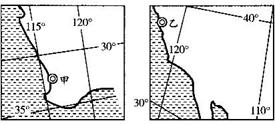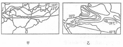 32.读我国甲、乙两地等温线示意图,回答下列问题:(24分)